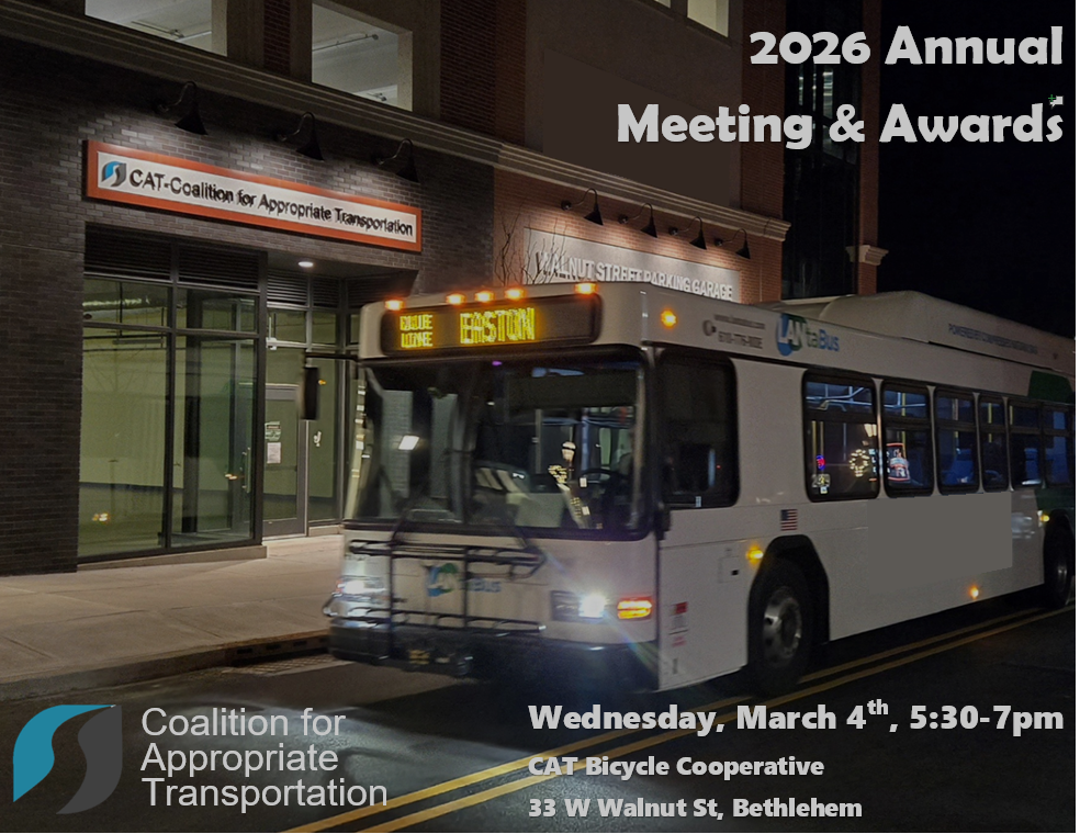 Join us for CAT’s Annual Meeting on Wednesday, March 4, 2026 from 5:30-7pm. This year’s meeting will be held at the new CAT Bicycle Cooperative on W Walnut Street in downtown Bethlehem.