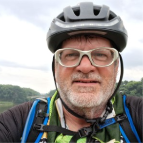 Tim’s an educator. He started as an elementary school teacher & finished as a professor & chairperson of the Dept. of Instructional Technology at Bloomsburg University. He’s been riding a bike since childhood and never stopped. He bikes for transport, shopping, exercise, & the joy of riding. He completed century rides and multi-day rides like Erie Canal Trail & Greater Allegheny Passage (GAP) Trail. He enjoys teaching people how to ride safely and repair their bikes.